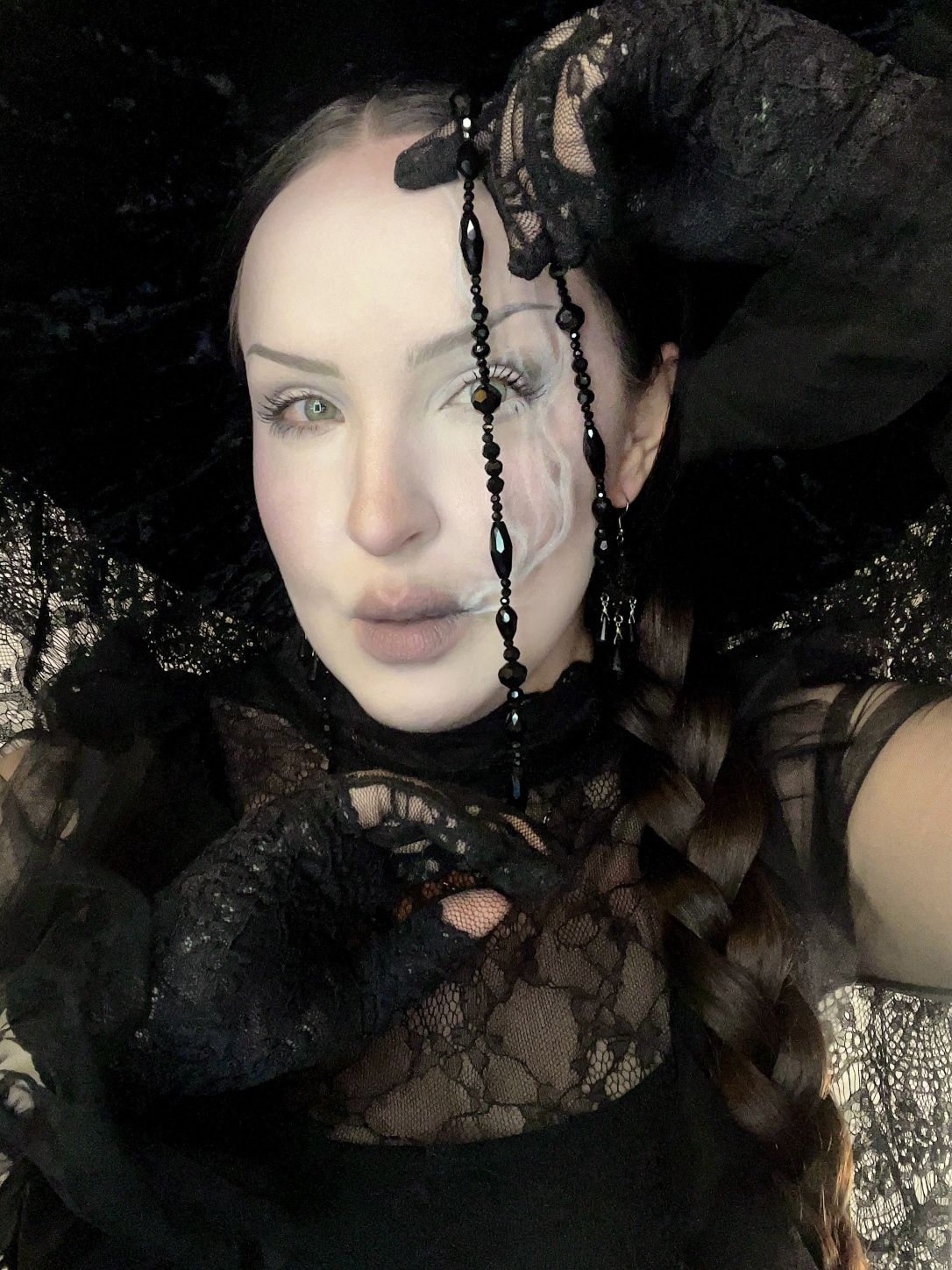 It doesn't matter what you wear it with, because it will make the outfit! A simple black tee, a slick bun or with a full ball gown, the feeling stays the same: fabulously dark, à la Morticia Addams, nothing less.