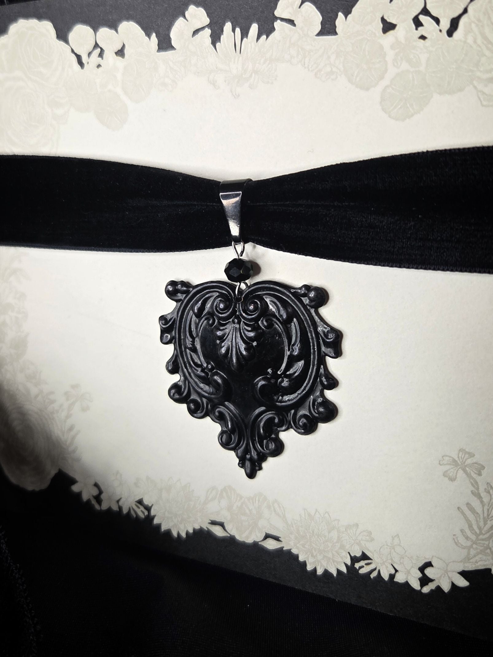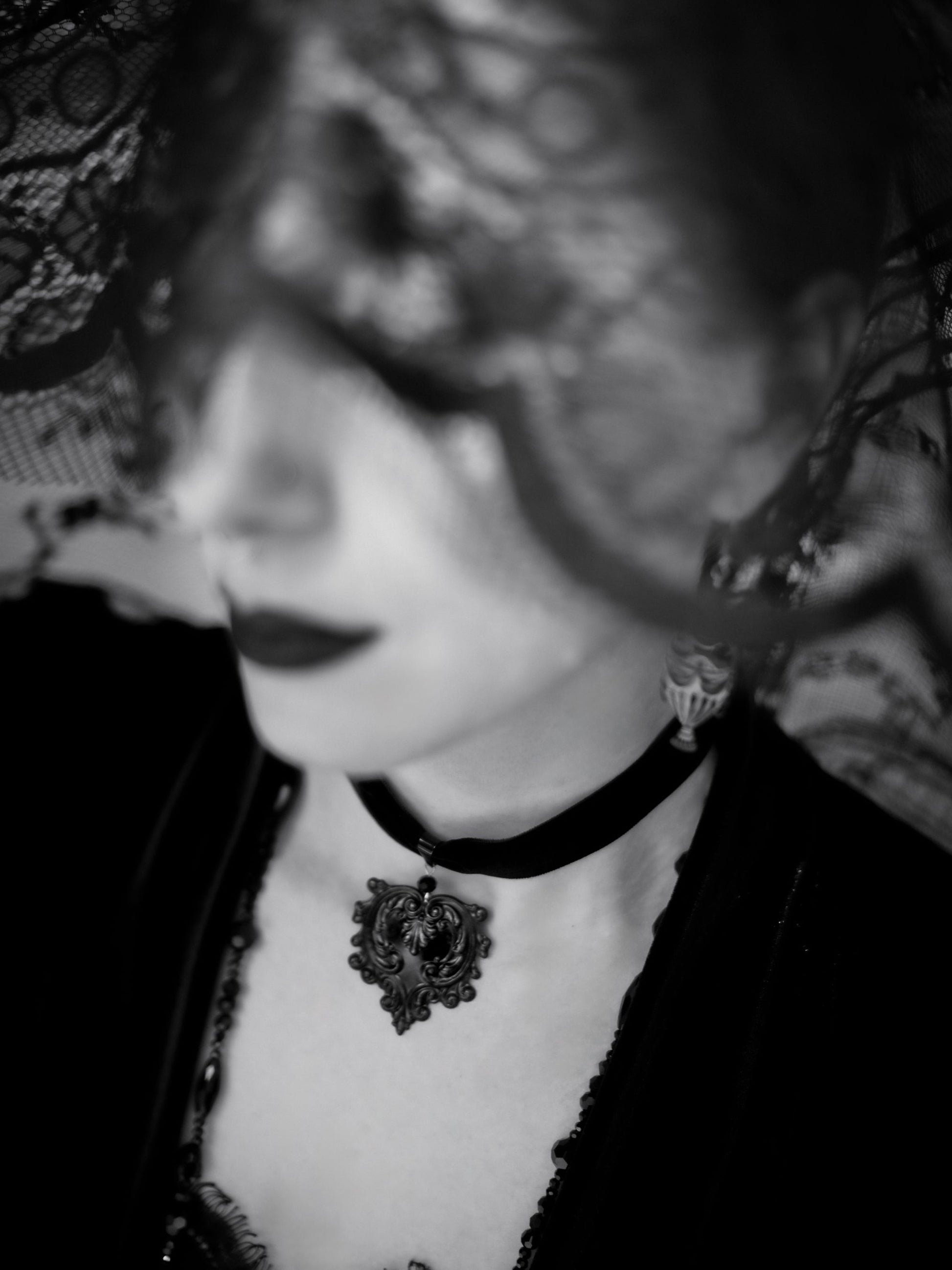 Intricate and dark, like you, this metal lace velvety necklace is inspired by Victorian shapes. You might recognize it from architecture, carved wood, and old needlework. All black by design, it nods to mourning rites while celebrating the beauty of your darkness, in all its power and intricacy.